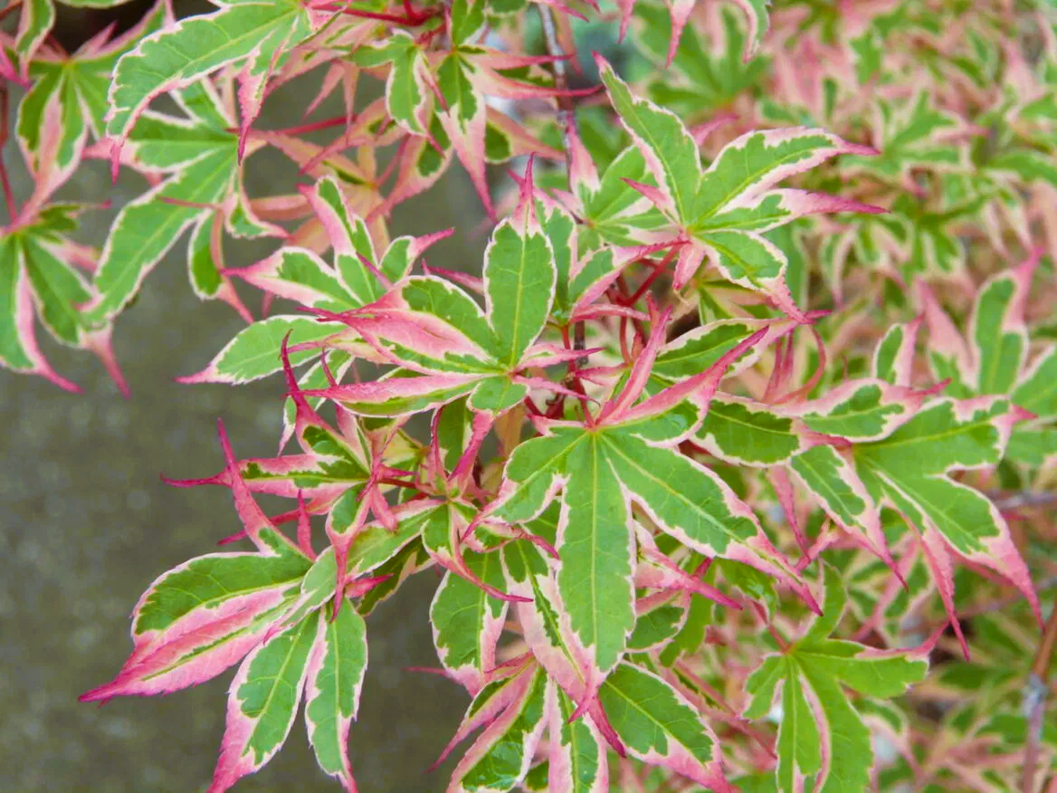 Acer palmatum ‘Roseo Marginatum’ es un arce japonés ornamental de gran valor decorativo, ideal para jardines pequeños, patios y cultivo en maceta. Destaca por sus hojas palmeadas finamente divididas.